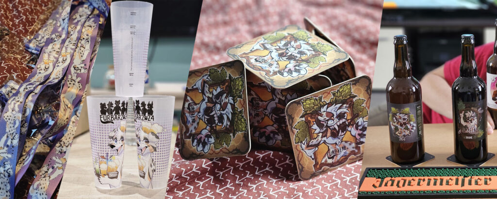 Mais que serait le Furbar de Lille sans ses produits à l’effigie de sa splendide mascotte : Kro ? Grâce à Pitou et de nombreux·ses artistes, nous vous proposons chaque année de nombreux goodies à l’effigie de l’événement, tels que des écocups, tours de cou, dessous de verre, et même des bières ! (brassées à la force du poignet de ses organisateurs).